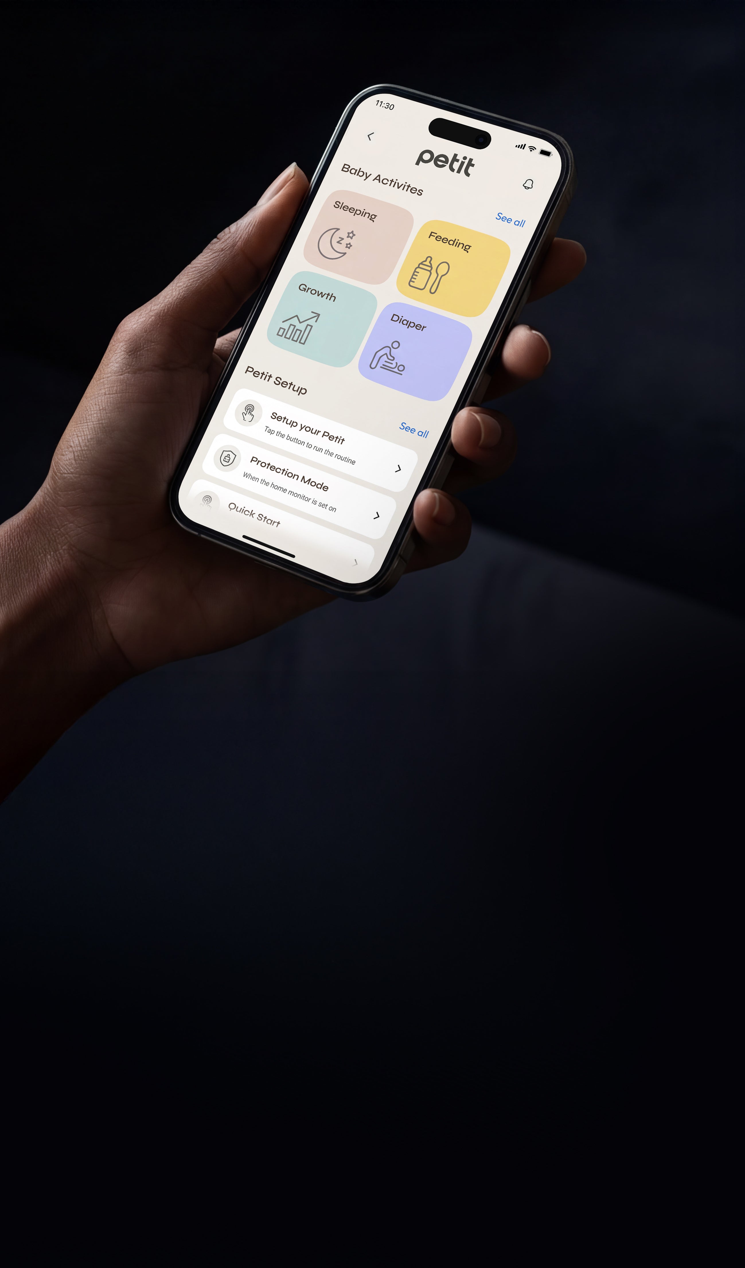 Petit gives you a live view, smart alerts, and detailed insights, so you always know how your baby is sleeping, breathing, and resting.