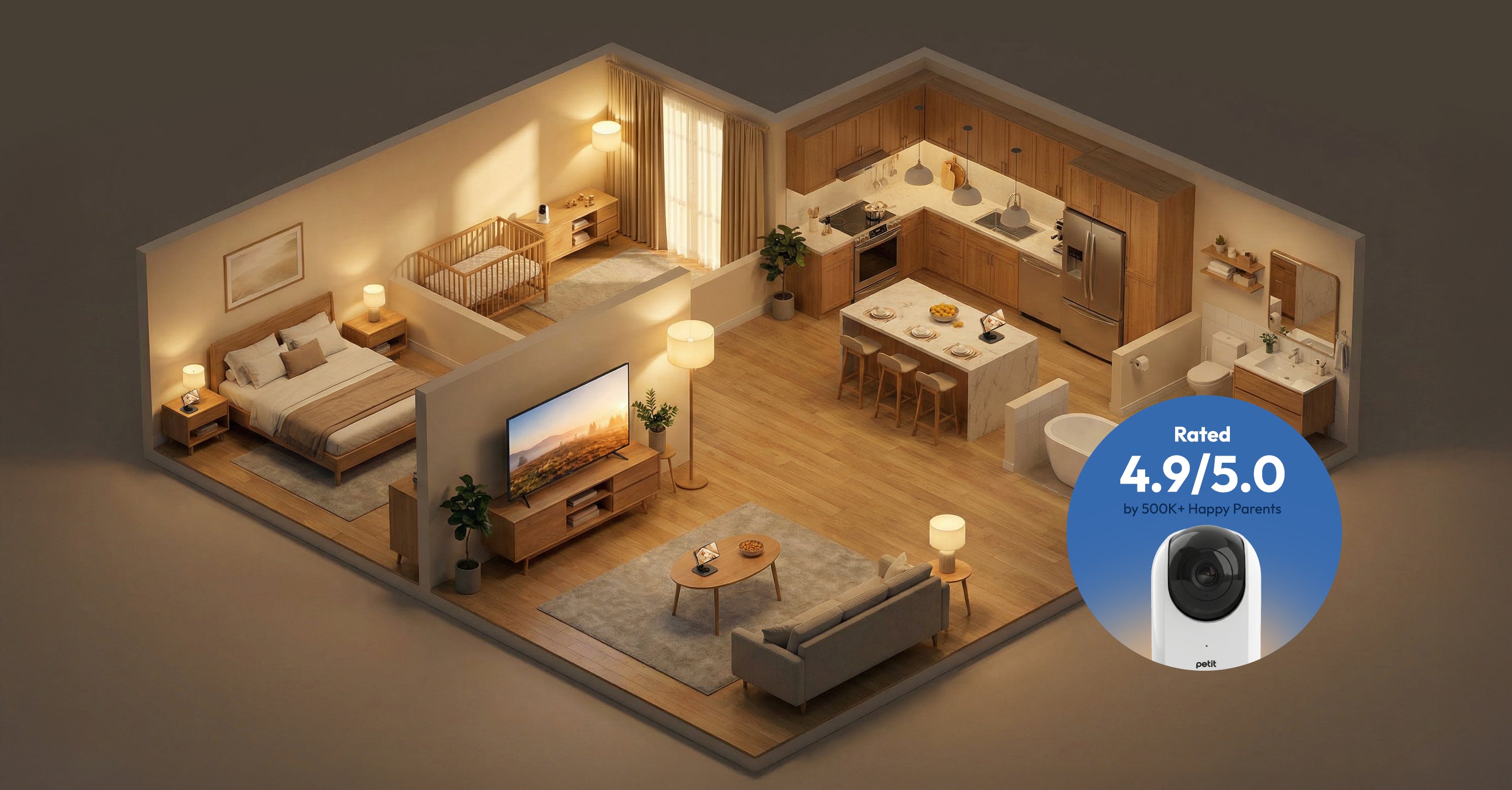 Whether you're relaxing in the living room or working from the kitchen, Petit keeps you connected. The wide-angle lens and remote pan/tilt (if applicable) let you check in anytime with a simple tap in the app.